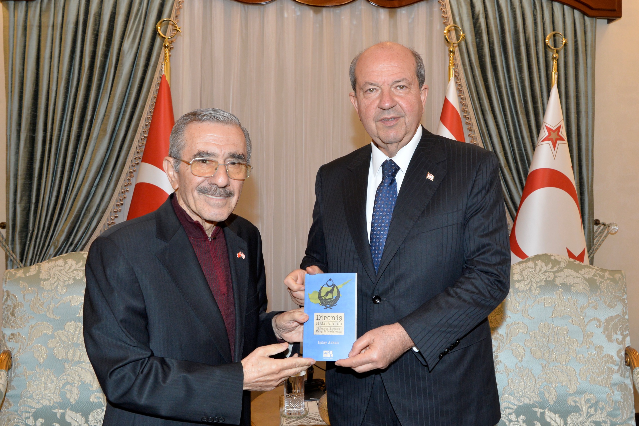 Cumhurbaşkanı Ersin Tatar’a, Işılay Arkan’ın kaleme aldığı “Direniş Hatıralarım Kıbrıs’ta Enosis’e Karşı Mücadelemiz” isimli kitabı takdim edildi.