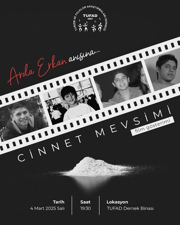 Turizm ve Folklor Araştırmaları Derneği organizasyonu ile 2015 yılında uyuşturucu tacirlerinin kurbanı olan ve genç yaşta hayatını kaybeden Arda Erkan anısına çekilen belgeselin gösterimi, 4 Mart Salı saat 19.30’da TUFAD lokalinde yapılacak.