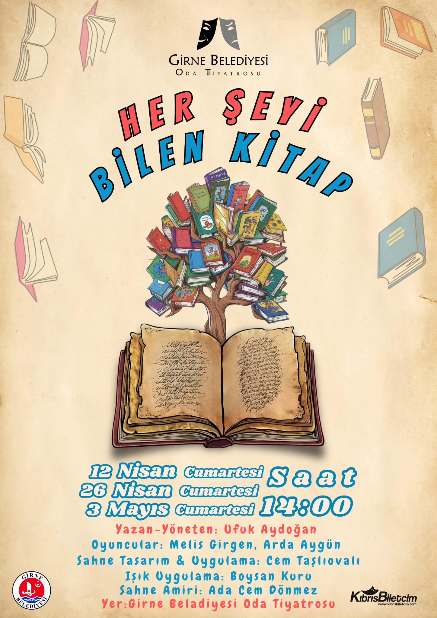 ‘Her Şeyi Bilen Kitap’ çocuk oyunu 12 – 26 Nisan ve 3 Mayıs Cumartesi saat 14.00’da Girne Belediyesi Oda Tiyatrosu’nda sahneleniyor.