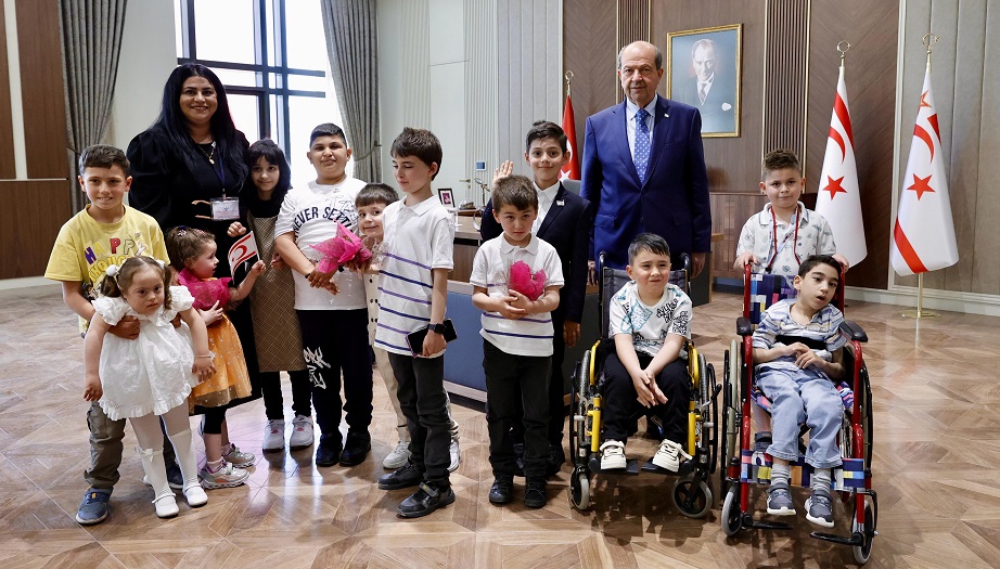 Cumhurbaşkanı Ersin Tatar, 23 Nisan Ulusal Egemenlik ve Çocuk Bayramı nedeniyle Cumhurbaşkanlığı Yeni Yerleşkesinde özel eğitim öğrencilerini kabul etti.