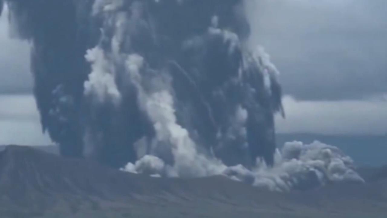 Patlama 3 dakika sürdü, yanardağdan yaklaşık 2 kilometre yüksekliğe kadar kül püskürdü.