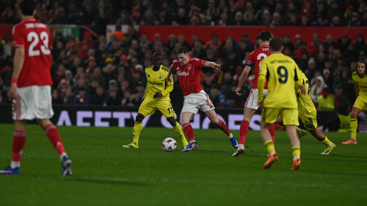 City Ground Stadı’ndaki karşılaşmaya etkili başlayan sarı-lacivertliler, 22. dakikada Kerem Aktürkoğlu’nun golüyle öne geçti. Üstün oyununu sürdüren Fenerbahçe, üst üste pozisyonlardan faydalanamadığı ilk yarıyı 1-0 üstün tamamladı.