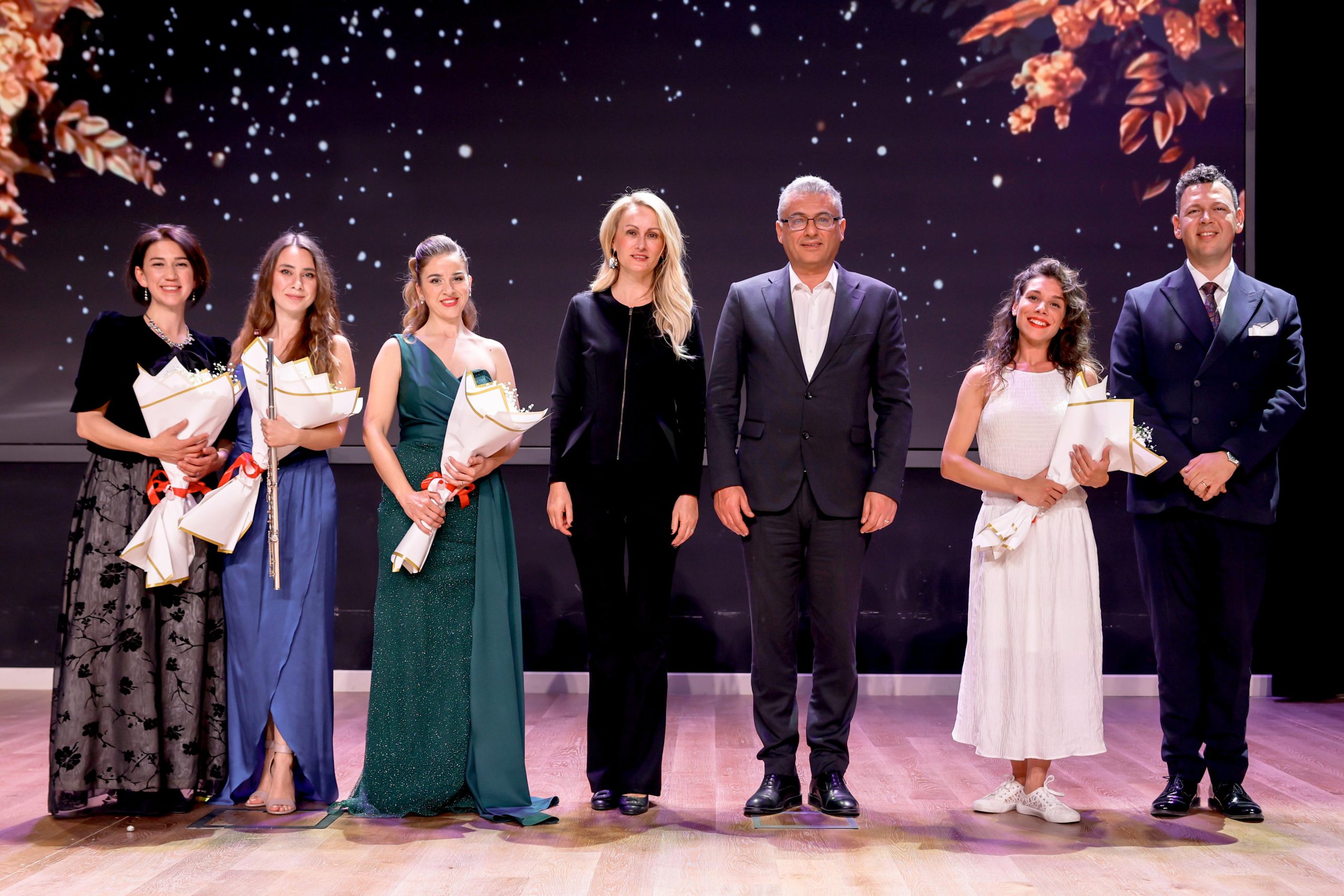 Konseri, KKTCDOB Genel Sorumlusu ve Genel Sanat Yönetmeni Tuğrul Enver Töre ile birlikte izleyen Cumhurbaşkanı Erhürman ve eşi, gecenin sonunda sanatçılara çiçek takdim etti.