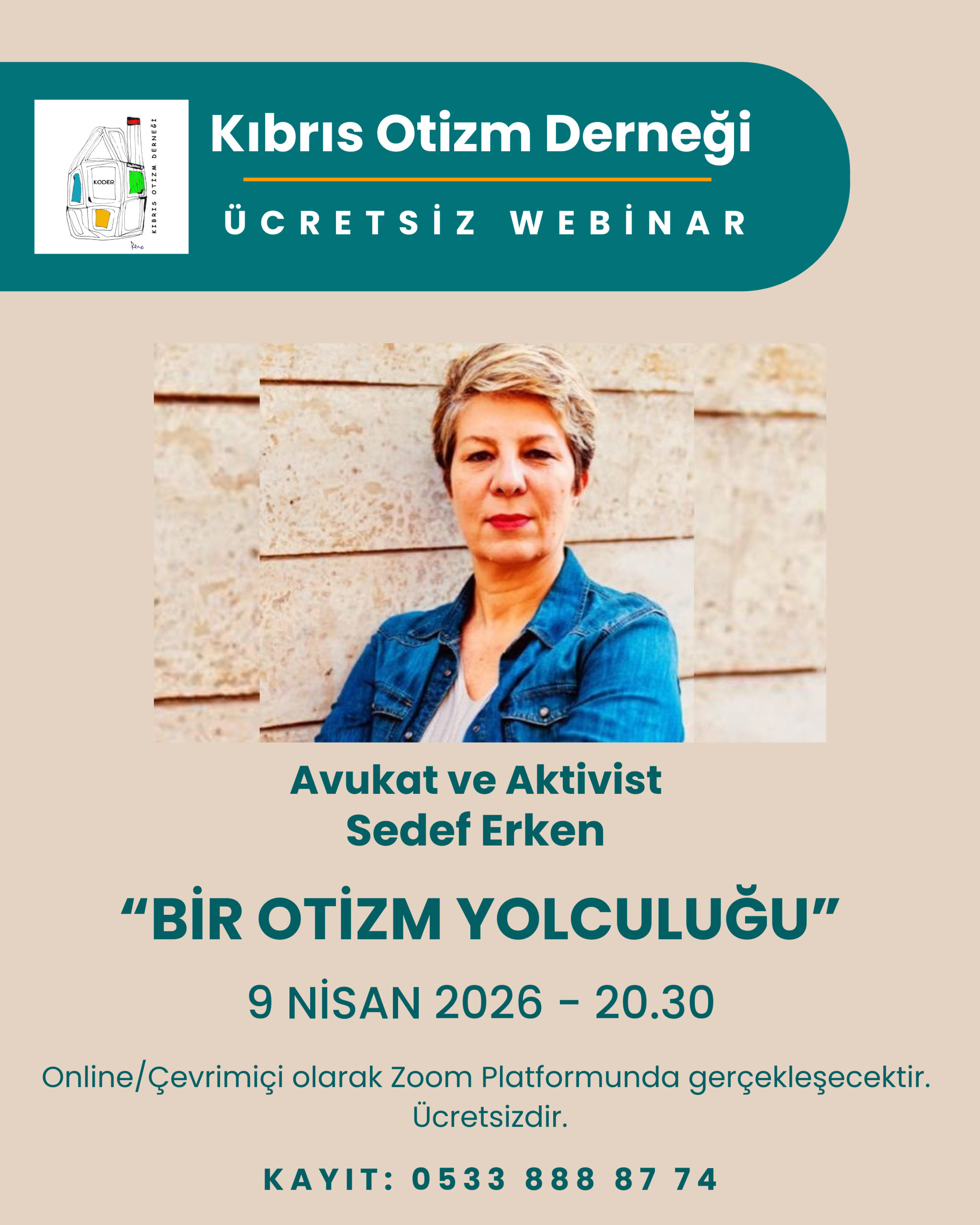 Ücretsiz olarak düzenlenecek webinara katılmak isteyenlerin, kayıt için 0533 888 87 74 numaralı telefondan Kıbrıs Otizm Derneği ile iletişime geçebileceği veya derneğin sosyal medya hesapları üzerinden başvuru yapabileceği belirtildi.